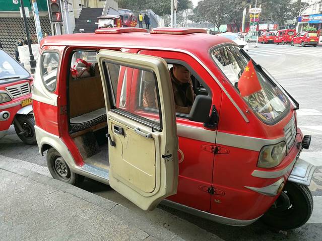 路边停着很多这些3轮,8元两个人,把我们拉到下一个点,铁路四村。。。