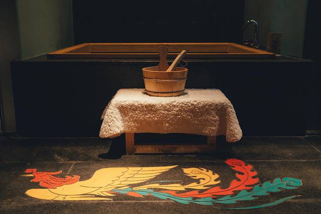 最有意思的还是属于浴室里的凤凰雕塑地板,