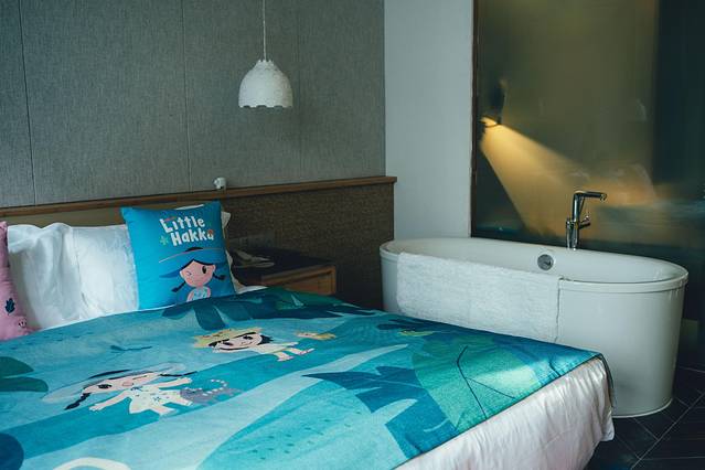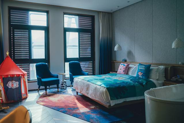 客房部分也根据不同风格设计, 其中包括小镇主打的动画《小凉帽》主题房型。
