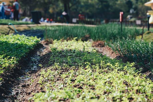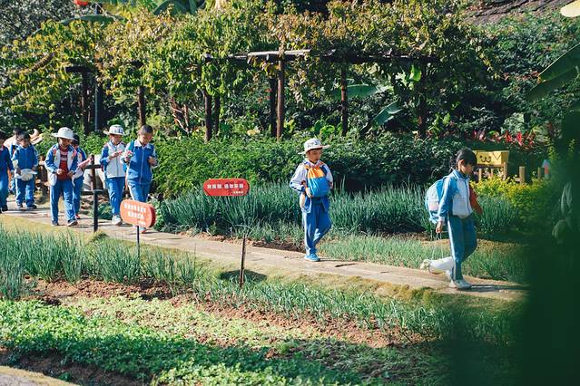 周五的下午, 小朋友们来到农场里秋游, 都认真的为土地里种下一颗蔬菜。
