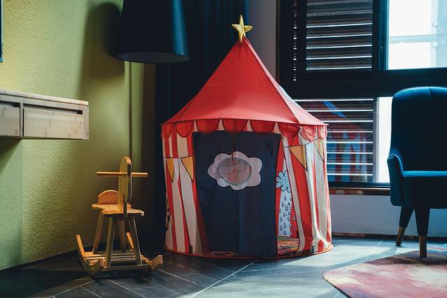 浴缸、 小朋友爱的帐篷全部集中在房间内, 但不会感觉到拥挤。