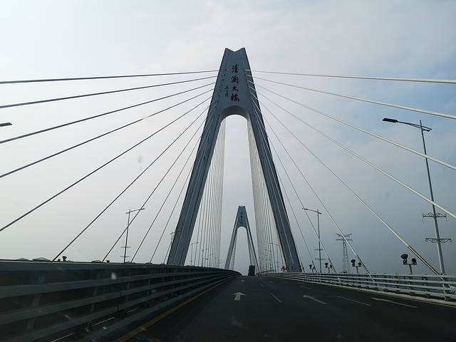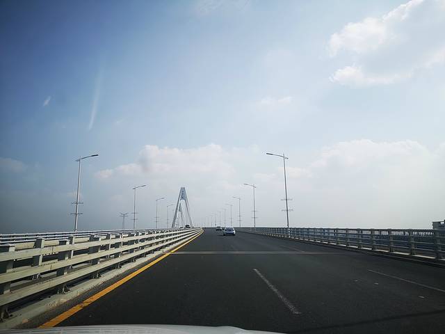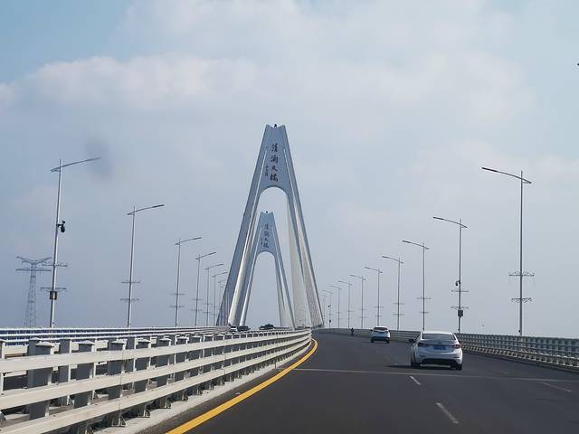 大桥很高,也很宽,双向六车道,边上还有人行道。大桥总长1828米
