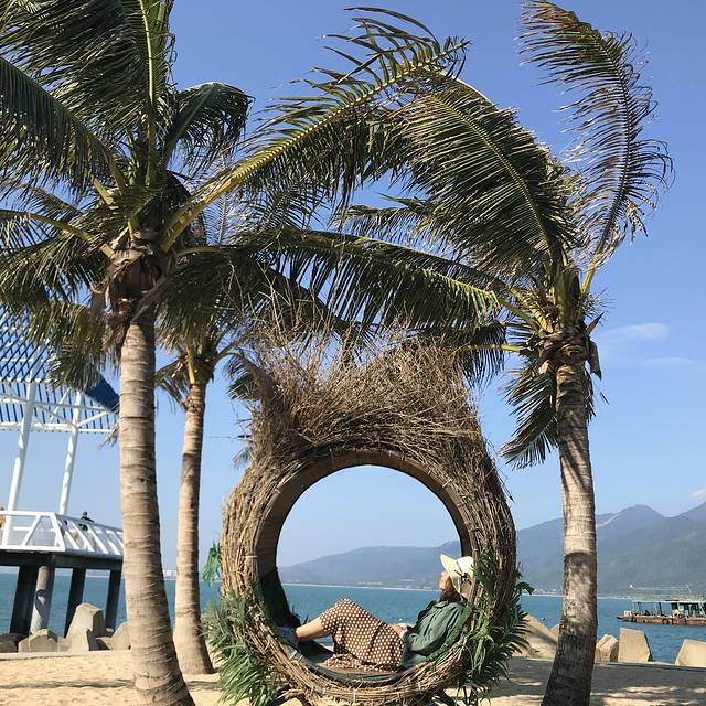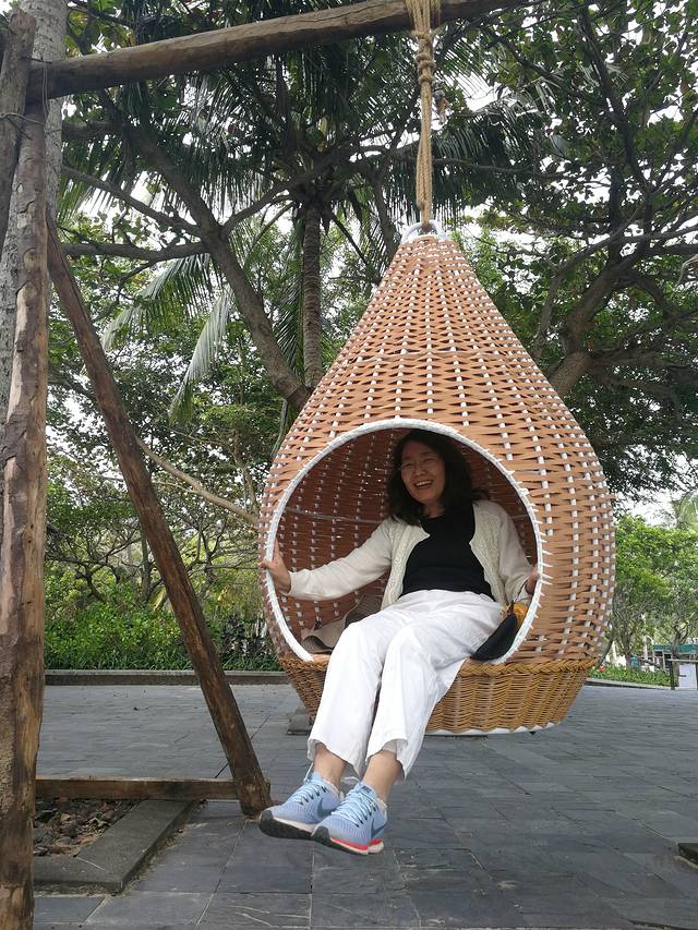 这个鸟巢距离地面有点高,而且晃晃悠悠的,好不容易才坐上去。于是这样坐坐,那样躺躺,再摇一摇,自在悠闲。要不是有别人等着拍照,真的起不来了