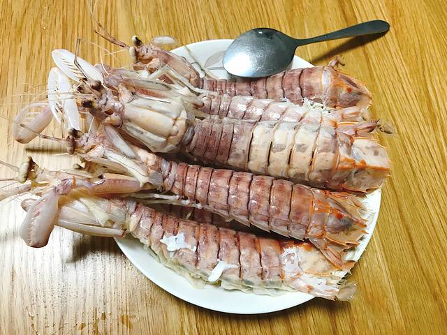 第一次看见这样的螃蟹,学名红星梭子蟹。壳不像大闸蟹那么坚硬,用牙一咬就开了