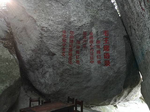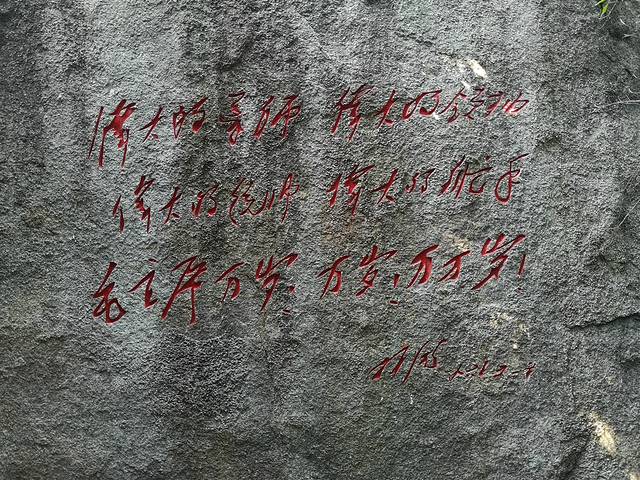 最奇妙的是,回望山的这一边,惊喜的发现半山腰有个石雕。此时的我正在对面山脚下的右侧位置