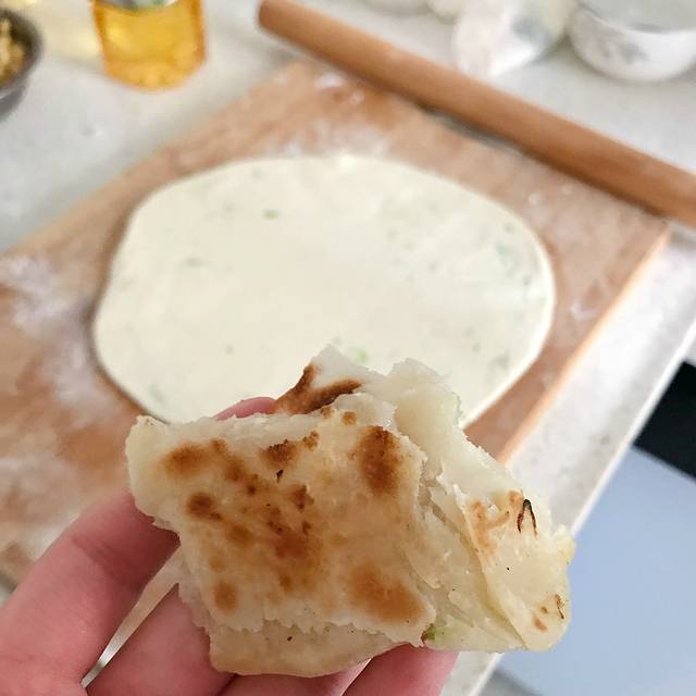 自己烙的葱花饼,如果不是亲眼所见,小美女无论如何也不相信我也会做