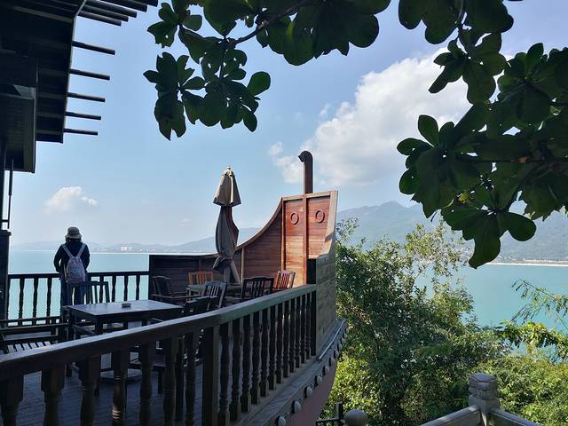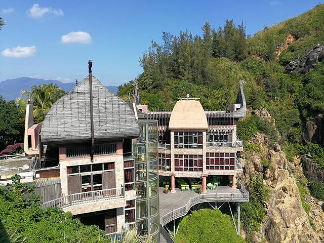 对面的空中楼阁是餐厅,依山而建,傍海而聚,许是别有风味吧