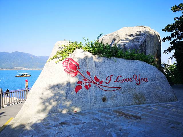 海湾内有一个原生态的无人海岛-加井岛(就是远处的那个岛吗?),周边分布着色彩斑斓的热带鱼,更是潜水天堂。这里也是电影《非诚勿扰2》的取景地