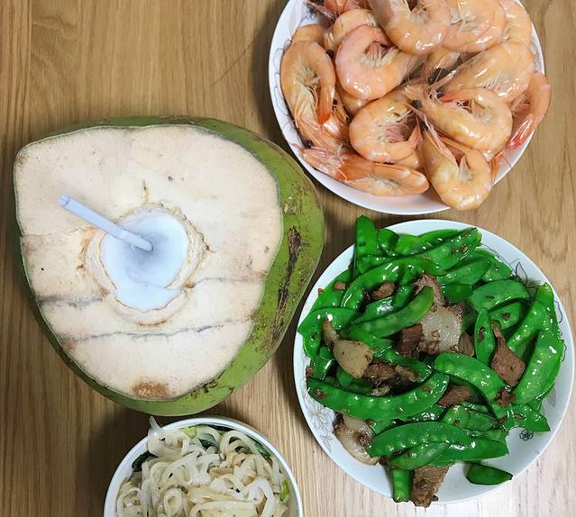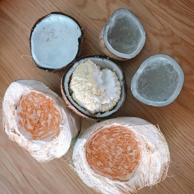 椰子大会。左下是经常看到的椰子,椰汁和椰肉已经吃光光了。天天吃仍是喜欢