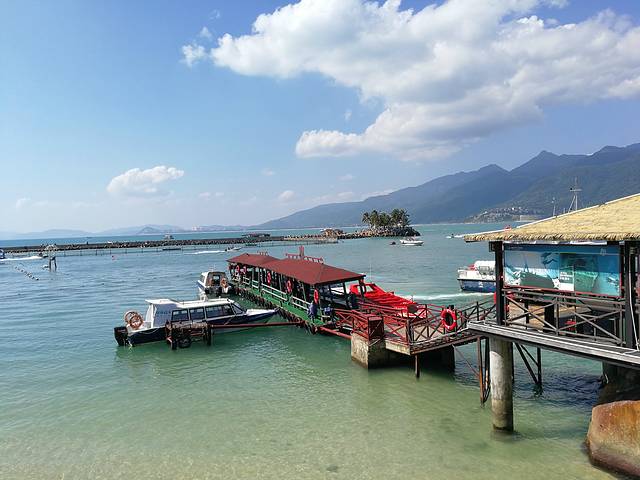 9点,到达码头。分界洲岛旅游区自2004年5月1日开业,2013年1月被定为5A级旅游景区,是中国首家海岛型国家5A级景区。看了之后,感觉和蜈支洲岛一样的美丽,但是更安静,不吵不闹,个人很喜欢