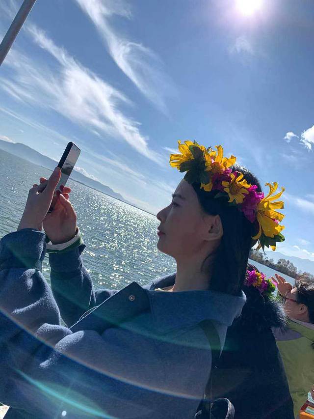 下车到洱海后,一些阿婆会卖给你花环,戴在头上拍照好看,5元一个