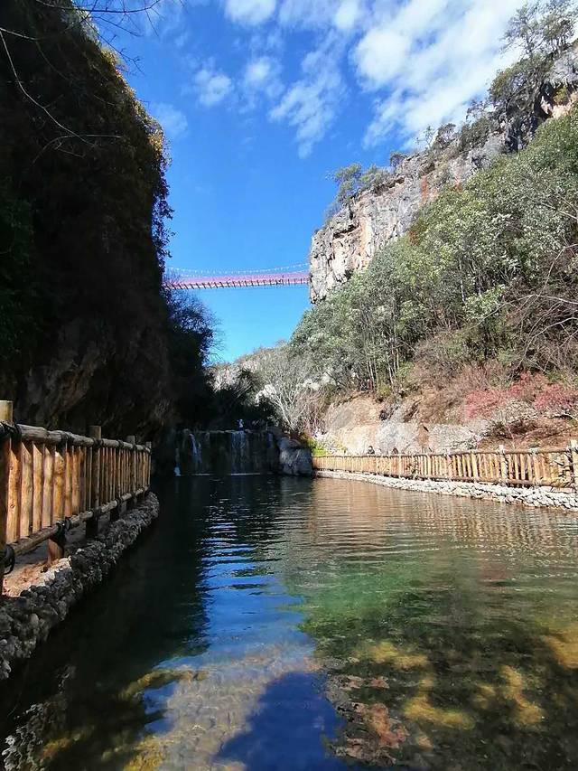 东巴峡谷有一条网红桥,可以去玩。谷下风景比较好,值得一去。沿着长长的峡谷一直走,每一处的风景都不一样。