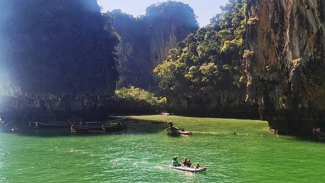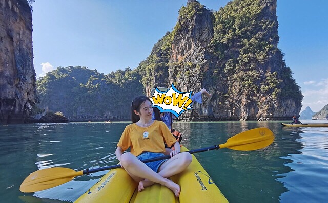 这一天的安排是早上换酒店,11点左右跟随旅行团前往攀牙湾,开始我们的“攀牙湾星光之旅”行程。包括浏览洞穴、划皮划艇、做水灯、欣赏发光浮游生物等。今天的交通工具是是一艘普通的观光船,不过通风性很好,完全不用担心晕船。