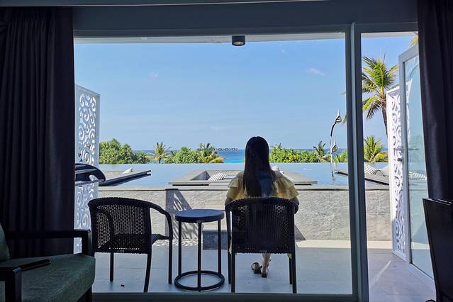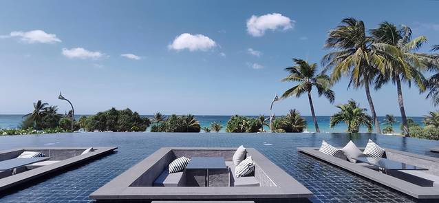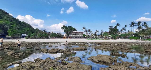 万豪度假酒店,又是一个服务一般,但是景色很不错的酒店(虽然我一直没有明白,它明明是在山上,为什么还是有私人海滩)。海滩上有很多游乐项目,比如皮划艇、冲浪板之类的,还有教练教学,都是免费的。不过海滩会涨退潮,我们当时是9:00-11:00左右涨潮,过点就退潮了,就不能在玩滑板一类的项目了。所以如果要去海滩上冲浪的话,还是需要注意一下时间。