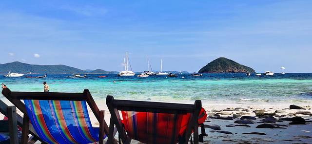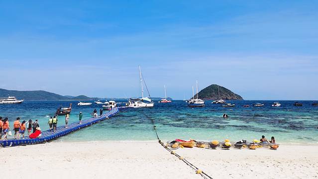 珊瑚岛主要就是各类玩耍的项目,拖曳伞、玻璃船、浮潜之类的,还有三角秋千等拍照点。相对来讲珊瑚岛的设施设备比较完善,还有免费躺椅,有荫凉处,还有免费的洗手间。如果要去皇帝岛深潜的话,建议在这里换好泳衣,皇帝岛那里设施比较简陋,换衣服很麻烦。