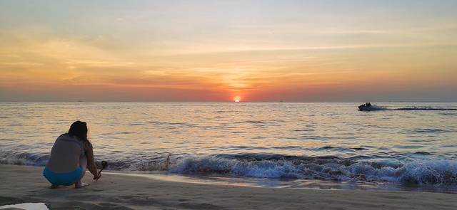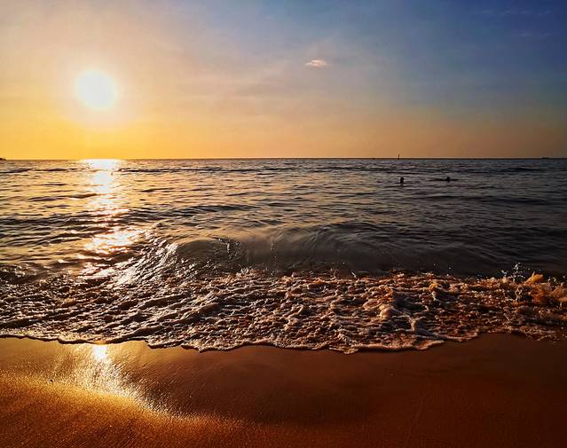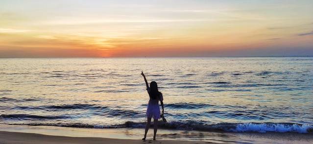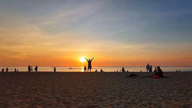 太阳落山后,在沙滩上美黑的外国友人们纷纷打道回府,海滩上的人肉眼可见的变少(虽然本来也不多)。坐在细软的沙子上,看着可爱的小朋友们在沙滩上追逐打闹,听着耳边来自五洲四海的各种语言,试图用自己的poor English加入他们的对话,最后发现还是body language+拟声词最为好用。天上时不时地飞过一两个拖曳伞,顺着线就可以找到在海面上飞驰的快艇,然后低下头默默算了一下手里的现金,果断地放弃了上天的想法。