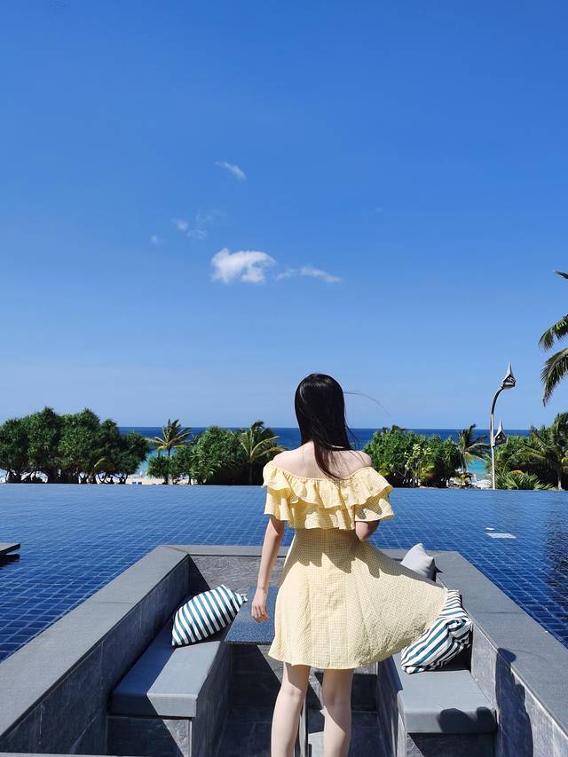 我都不想回想我们是转了多少圈才拍出了这张面朝大海的图。这是一个一米六、八十斤的妹子坐在里面,由此可见这个秋千有多小。