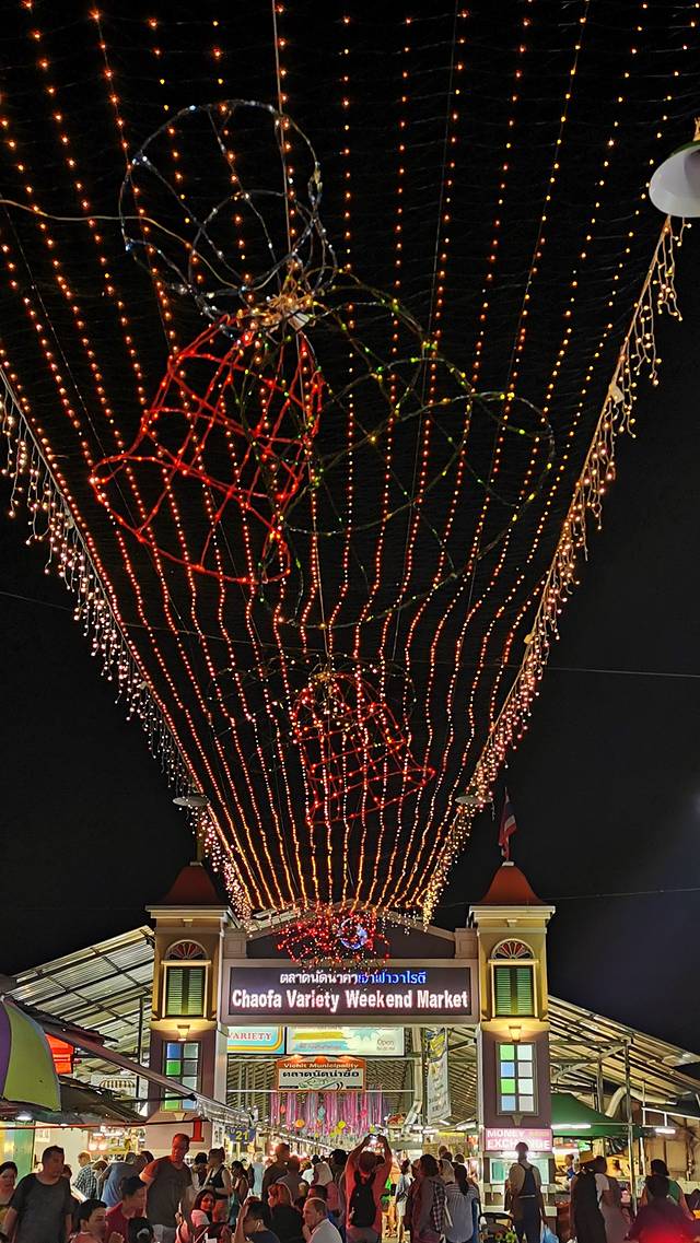 在卡伦海滩看完日落,我们就用grab打车前往普集镇的周末夜市。grab的迷惑行为:我们每次都选择4 seats的车,但是每次都来一辆能坐十个人的小巴。后来和阿玲讨论了一下,我们觉得可能这些小巴,白天跟着各个旅游团在酒店和码头间来往接送,晚上就在grab上接单。