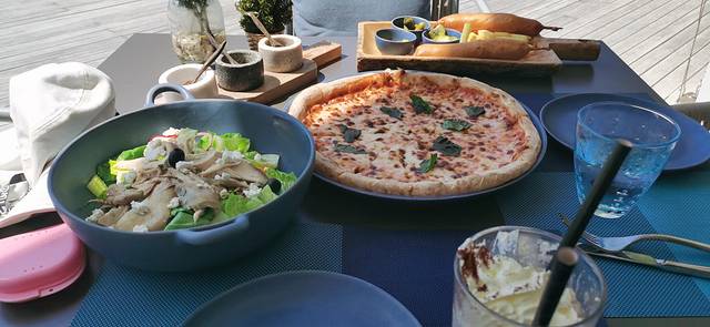 餐厅离海滩也很近,中午找了一个靠外面的座位,边吃边安静地看大家玩耍。