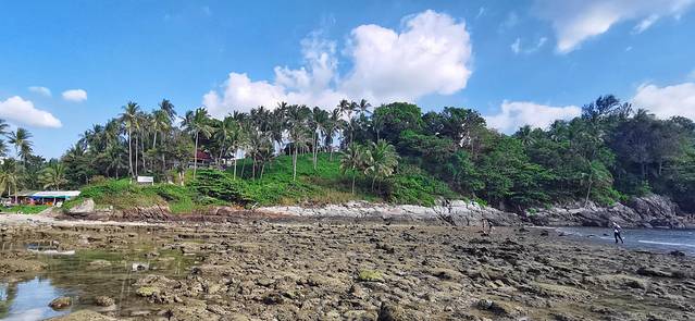 退潮后露出了岛的下半部分,石壁上密密麻麻的都是各类贝壳,说实话有些吓人。因为攀牙湾是内海,所以海水没有像昨天的珊瑚岛那样清澈,反而有些发绿。