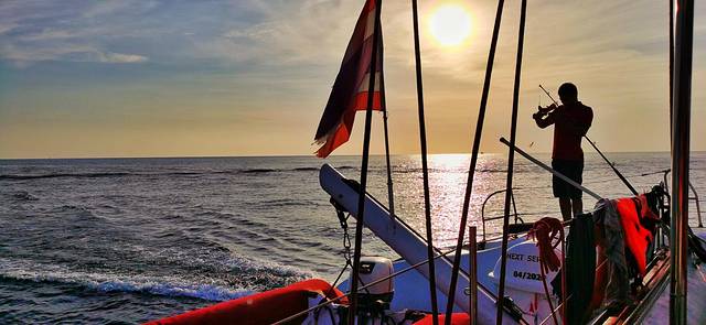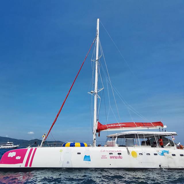 我们在网上订了帆船出海的行程,主要活动包括“珊瑚岛+皇帝岛+海钓”。