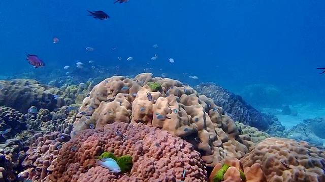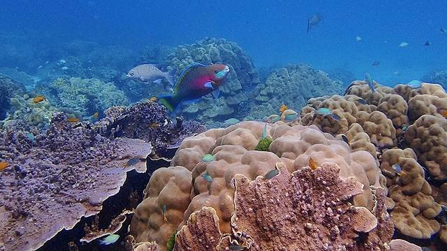 皇帝岛的海底世界真的和宣传片里的一模一样,甚至比宣传片里的更加生动!长得奇形怪状、配色随心所欲的小鱼就在你的身边游来游去,你经过一片又一片珊瑚礁,礁石上的贝壳一张一合,海星懒懒地趴在某个海底或者某块礁石上,不远处是几个海胆,愤怒地立着浑身的刺……