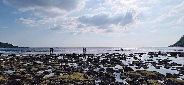 穿越礁石,跋山涉水地前往退潮后的海边。