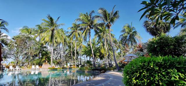 下午在酒店里逛了逛,前一天晚上乌漆嘛黑的没仔细看,白天才发现酒店真的很大,有好几个花园,各个池子里都有在打水仗的朋友,还有躺在躺椅上美黑的朋友们。