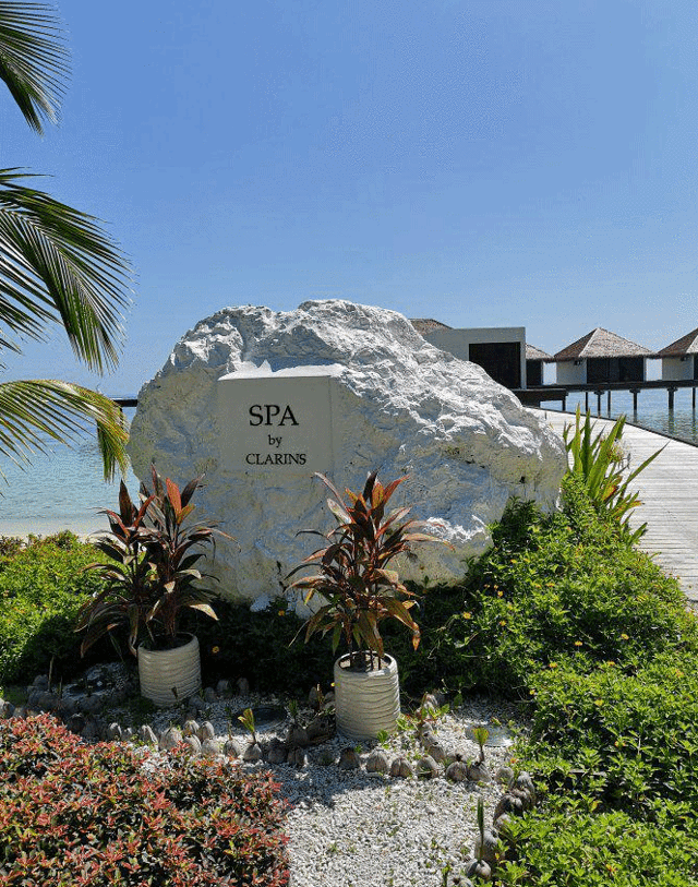 Spa by Clarins位于小岛东南边的栈桥尽头,全是水上屋,包括6间独立的理疗亭和1间美发沙龙。单人60分钟护理价格在100-160美元之间,90分钟要160-200美元。其实高星岛的Spa中心都挺美,各种亭台楼阁,瑞僖敦也不差,大家即便不按摩也可以蹭每天免费的日出日落瑜伽课上来看看。