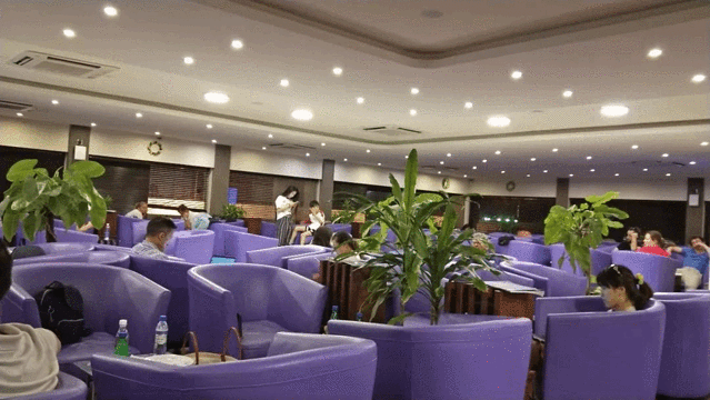 瑞喜敦的交通方式是【国内航班+快艇】,柜台接待人员就会带我们去隔壁的国内机场办理登记手续。提示:内飞公共候机室有很多好吃的自助餐,免费的,大家可以边吃边等哦!