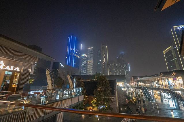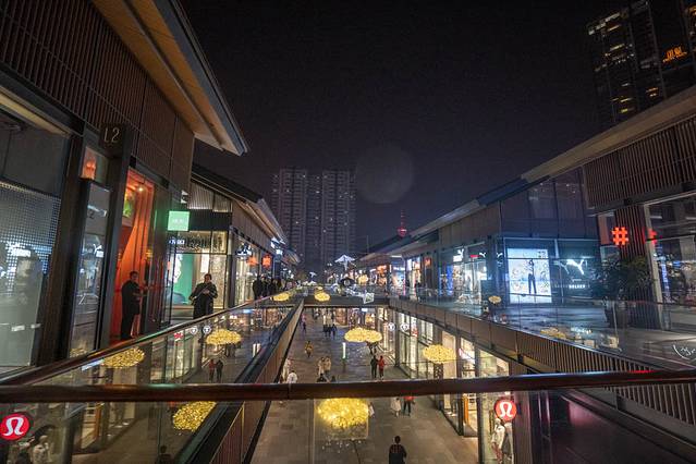 各色店铺富丽、灯光闪烁,逛街散步的人群也依然熙熙攘攘。