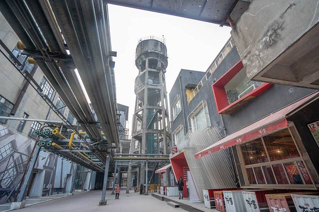 沿着主干道拐进小巷子里,就能看到历史遗留下来的纵横分布着的管道,它成为独特的工业风标志物,也吸引了人们前来拍照打卡。