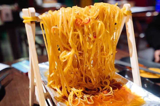 网红菜品:晾衣土豆丝。这可不是传统土豆丝,而是把像挂面般的土豆丝条驾在支架上,再搭配着酸酸辣辣的凉拌酱,吃起来也是别具一格。
