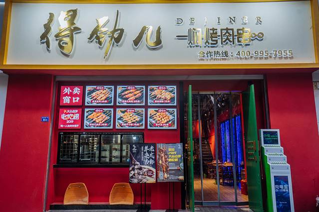 这家装修别致的餐厅也有着非常个性的名字——“得劲儿”焖烤肉串,连营业时间也非常任性,只在晚上营业。