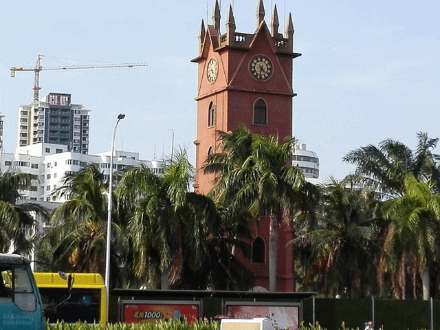 走到公园的制高点,能远眺到市区和琼州海峡。