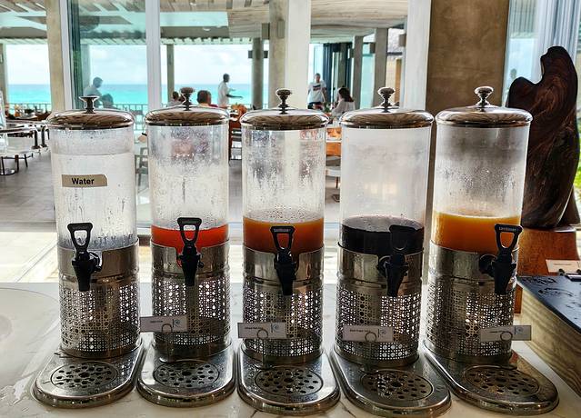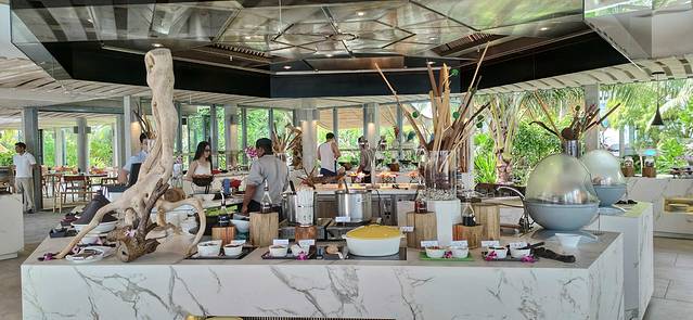 岛上有三个自助餐厅,一般都选择离房间近的一个餐厅用餐,期间换过一次房间,所以共尝试了两个餐厅的菜品,感觉都差不多,只是临海的餐厅感觉环境更好