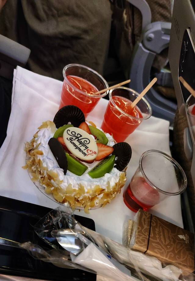 一路上吃的不断,正常的午餐外,小零食、酒水、冰淇淋不断,还为我们提供了蜜月蛋糕和鸡尾酒