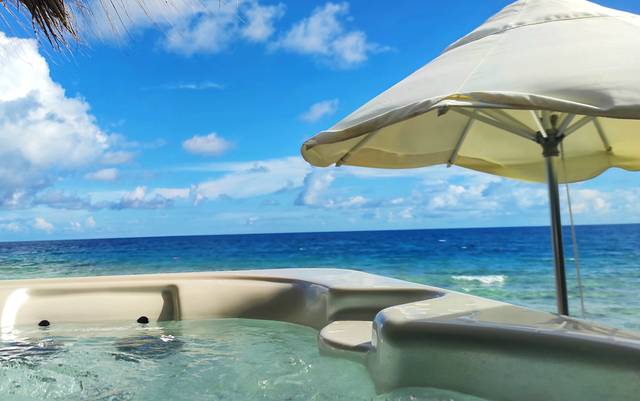 来到以后才有点后悔没有升级高级水屋,带泳池的那种,这个水屋有点陈旧的感觉,不过也很舒服了。