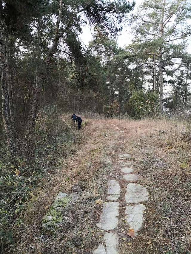 走一小段就看到这个石墙,从右边小路下坡,可到正路。