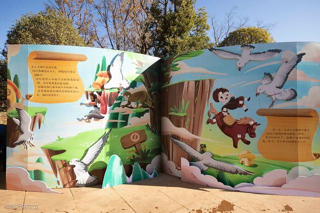 一进入乐园门口,就有一面像展开的故事书一样的立墙,上面写着小王子的片段。先给游客门打开了一个充满想象的、童话世界的大门。在这个世界里,充满欢乐、纯粹和友爱。这也是萌宠乐园的回归本真的初心。这里也有很多体验项目,也有生动的互动可以参与,让游览变得更加有乐趣,带小朋友来这里的集齐动物印章可得到一枚徽章,还可以抽奖一次。