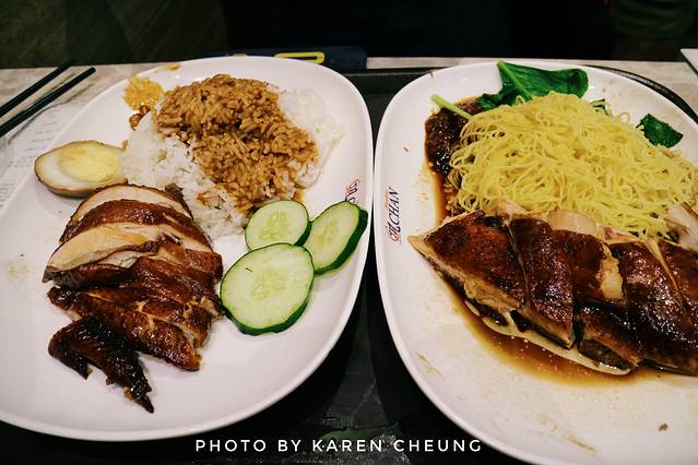 一眼望过去,正对面的橱窗里挂满一排排油亮飘香的烤鸡,色泽饱满,泛着光亮,让人垂涎欲滴。点餐模式以套餐形式为主,主打油鸡饭和面,因为是快餐,所以“翻台”速度还挺快,排队等候时间不长。