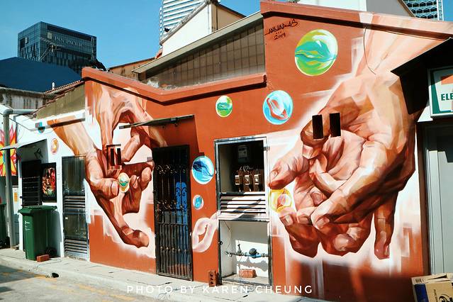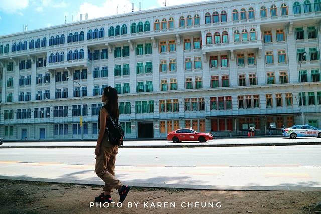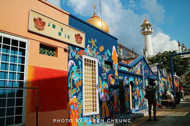 顶着烈日高温暴走,连不爱出汗的我也开始狂飙汗,胖子就更不用说了,为了避免他闹脾气,我只好快速寻找最近的景点。离牛车水不远,往克拉码头方向走,经过一座路桥,便能看见一栋外形十分吸睛的建筑。