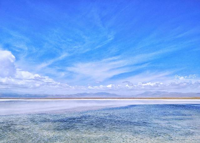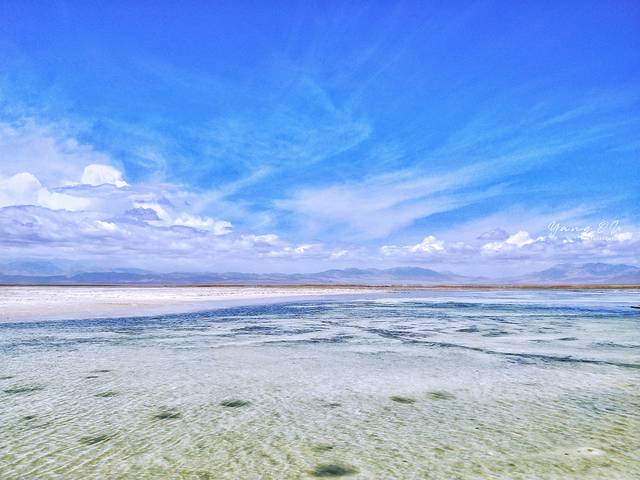 去时正值五月初,茶卡还处于枯水期,能看到一边盐地一边浅湖的样子。