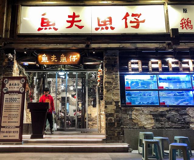 致民路这个地方,早就听成都当地的朋友安利了无数次,所以这次来成都旅游也是将入住的民宿订在了致民路上,刚好楼下就是这家热门的【鱼夫鱼仔鹅卵石鱼火锅】,岂有不来打卡的道理?