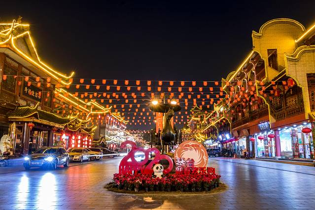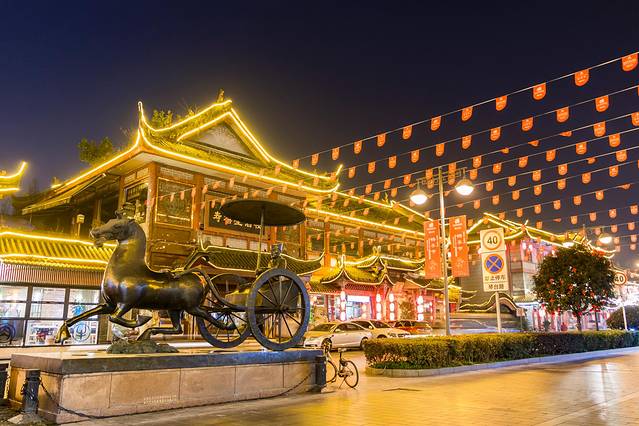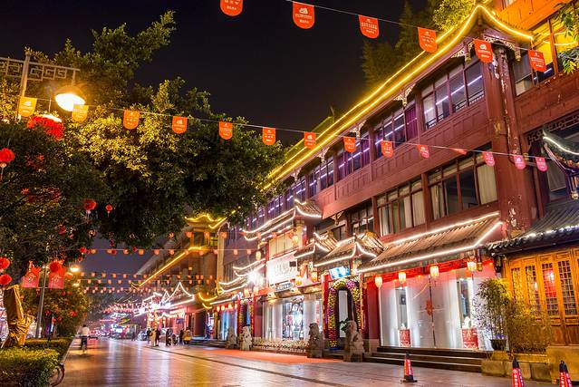 都说重庆的夜景美得梦幻,但入夜后的成都却也美得让人着迷,或许之前大家只知道九眼桥酒吧街都热闹,但我这次却想给大家介绍一个更美的去处:以司马相如和卓文君的爱情故事为主线打造的【琴台路仿古街】,才是从门牌坊美到了街尾,真正做到了每一步都是景~