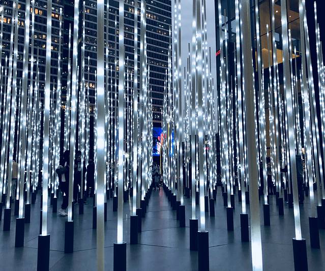 春熙路玩的东西不少,而且随时还会推出一些信息的玩意儿来,这几天在IFS楼下就弄了一个盛大的“灯光秀”,上千根柱子竖立在广场中间,随着音乐的节奏不断变化色彩,还能组成高低起伏的各种图案,被网友戏称为“柱子形状的音乐喷泉”。