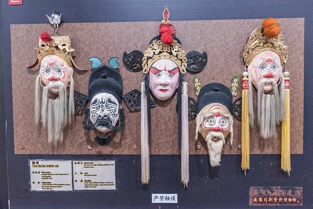 博物馆中还展出了几套川剧常用的戏服与各种道具,可以说这是我们最近距离的能够接触到的川剧文化,虽然没有台上变脸、戏曲表演那么精彩,但却能给你更深刻的印象。