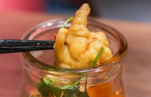 【耙鸡爪】轻轻一吸肉就全部下来了,卤味十足一抿就烂。