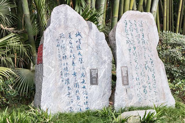 浣花溪公园还是一个非常“有文化” 的地方,在公园的山包下面,围绕着一圈都刻满了杜甫的诗词,其中有一些我们课文学过的常见诗,也有一些从未看到过的生僻作品,总之看完后你多半也会与我一样,感叹一句:“不愧是诗圣啊!”