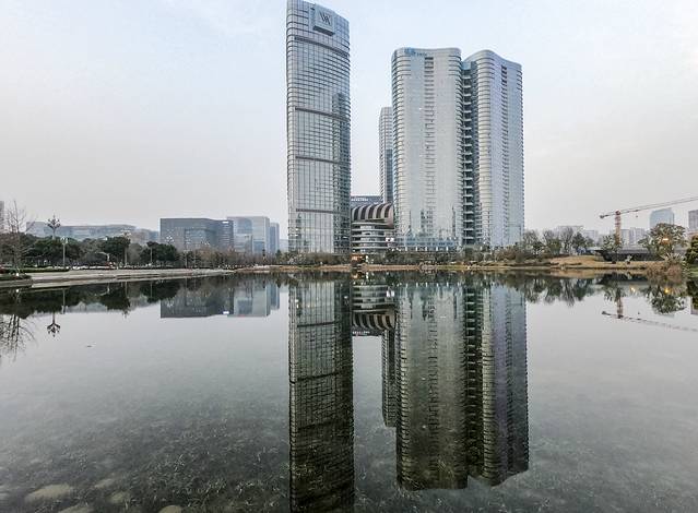 如果不是到南边来找钟书阁,也不会发现在成都最繁华、最现代化的金融城旁边还有这么一个生态公园的存在,特别是这种一边高楼大厦、一边水草丰盛的强烈对比,更是增添了一份独特的美感。